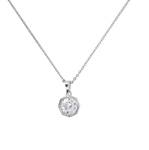 Collana in argento 925 rodiato, con al centro uno zircone bianco circolare che forma un ottagono. Lunghezza: 43,2 cm. I gioielli della collezione C'era una volta sono anallergici, perfetti per ogni occasione e forniti di packaging. I gioielli Bianca Milano sono realizzati con grande passione e attenta cura dei dettagli, caratteristiche che solo l'unicità dei prodotti Made in Italy può garantire. Spedizione garantita entro 48 ore. - Codice: WSBC00041
