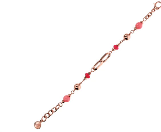 Bracciale Bronzallure realizzato su base Golden Rosé, placcata oro rosa 18kt, con catena rolo alternata a maglie ovali impreziosita da quattro sfere (10 mm) e quattro rondelle (8 mm) in pietra naturale quarzite; chiusura a moschettone con extender. Lega brevettata Golden Rosé Designed and made in Italy Nickel free, cadmium free Ipoallergenico Materiale: Golden rose Lunghezza (cm): 20 Lunghezza extender (cm): 3 Peso (g): 18