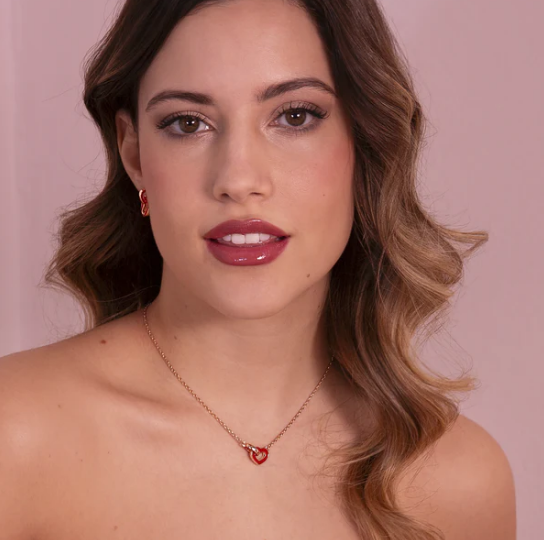 Collana realizzata in lega Golden Rosé, placcata Oro rosa 18kt, con catena forzatina impreziosita da un doppio pendente intrecciato a forma di cuore e di maglia ovale. Entrambi i pendenti presentano una superficie smaltata di colore rosso. Chiusura a moschettone. Lega brevettata Golden Rosé Designed and made in Italy Nickel free, cadmium free Ipoallergenica Materiale: Golden rose Lunghezza (cm): 39 Lunghezza extender (cm): 4 Peso (g): 6