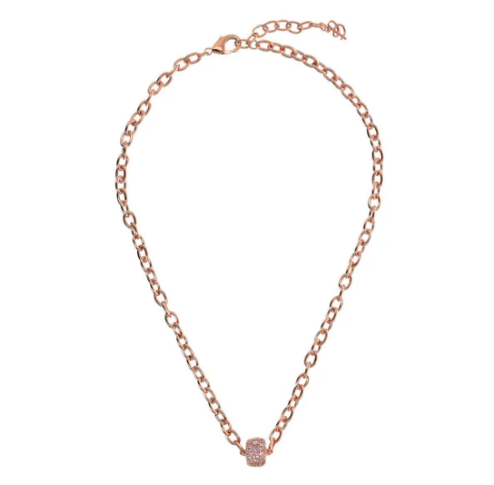 Collana girocollo Bronzallure realizzata in lega Golden Rosé, placcata Oro rosa 18kt, con catena rolo ovale lucida impreziosita da un pendente a forma di rondella in pavé di cubic zirconia, qualità luminosa. Lunghezza 40+4 cm di estensione. Chiusura a moschettone. Lega brevettata Golden Rosé Designed and made in Italy Nickel free, cadmium free Ipoallergenica Materiale: Golden rose Lunghezza (cm): 40 Lunghezza extender (cm): 4 Peso (g): 21.4