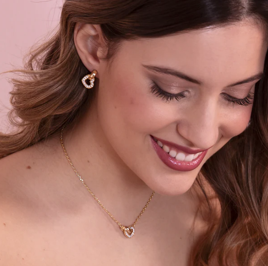 Orecchini pendenti realizzati in lega Golden Rosé, placcata Oro giallo 18kt, con doppio elemento intrecciato a forma di cuore e maglia ovale. Entrambi gli elementi sono impreziositi da piccoli punti luce in cubic zirconia, qualità luminosa. Chiusura a perno e farfalla. Lega brevettata Golden Rosé Designed and made in Italy Nickel free, cadmium free Ipoallergenici Materiale: Golden rose Peso (g): 4.8