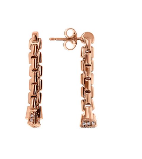 Orecchini pendenti Bronzallure realizzati in lega Golden Rosé, placcata Oro rosa 18kt, con maglia veneziana e dettaglio in pavé di cubic zirconia, qualità luminosa. Lunghezza 3 cm. Chiusura a perno e farfalla. Lega brevettata Golden Rosé Designed and made in Italy Nickel free, cadmium free Ipoallergenici Materiale: Golden rose Lunghezza (cm): 3 Peso (g): 4.5