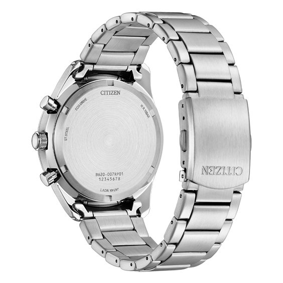 Orologio Citizen Uomo Caratteristiche dell'orologio: Movimento Eco Drive Funzione Cronografo Cassa in acciaio da 43 mm Cinturino in acciaio Fondello a vite Vetro minerale Quadrante colore nero Impermeabilità fino a 10 atm Peso 156,00 gr